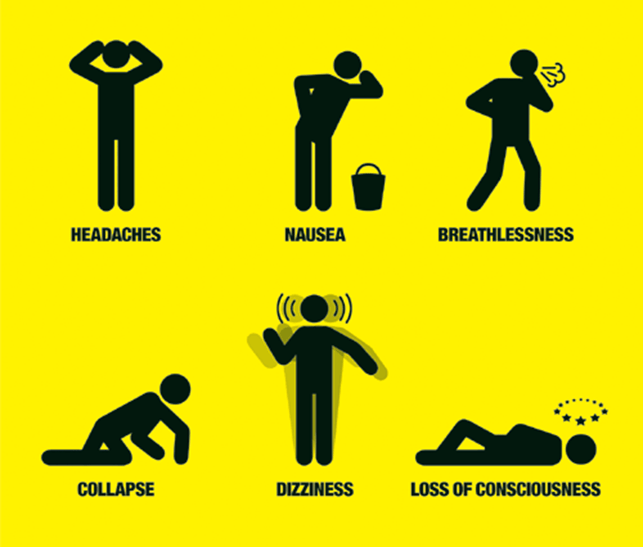 CO² ist farblos, geschmacklos und geruchlos. Symptome einer Überexposition gegenüber CO² sind: